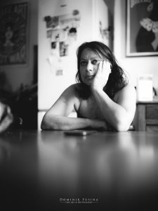 Le lendemain matin, j’ai décidé de revenir lui dire au revoir. Elle était en train de poser de la tapisserie avec son amie Lucie. Elle n’arrête jamais. Et puis j’ai osé lui demander si elle accepterait de faire partie de mes « Gueules ». Je lui devais bien ça. Avec un très beau sourire et un regard illuminé, presque comme un honneur, elle m’a répondu un gros « oui ».