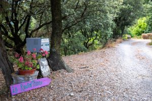 Sophie, la cinquantaine passée, vit depuis plusieurs années dans un petit village ardéchois, à Malarce-sur-la-Thines. Disons plutôt, au bout d’un long chemin sinueux semé d’embûches, à l’instar de sa vie. Pour la rencontrer, j’ai dû laisser mon véhicule 2km avant, dans le centre du village (trop étroit pour mon camping-car). Puis j’ai pris mon sac à dos et j’ai fait le reste du chemin à pied. Après une bonne demi-heure de marche, tout au bout, un simple panneau indique la direction de sa maison. Un autre indique « Voie sans issue ».