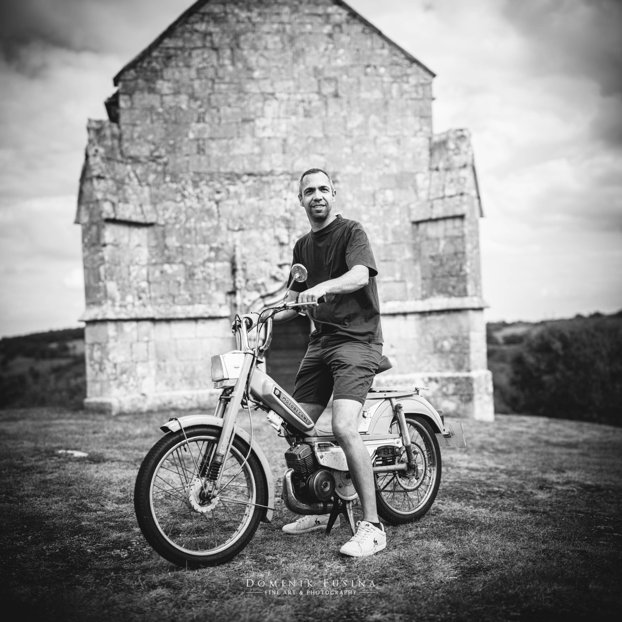 Mon roadtrip m’impose de trouver chaque soir un endroit pour passer la nuit. Généralement, je tente de joindre l’utile à l’agréable en recherchant des lieux inspirants, comme ici au pied de la Chapelle Notre-Dame-des Grâces à Lacapelle-Livron, près de Caylus (82). C’est ici que j’ai croisé Eddy et sa… rutilante motobécane orange !🤩