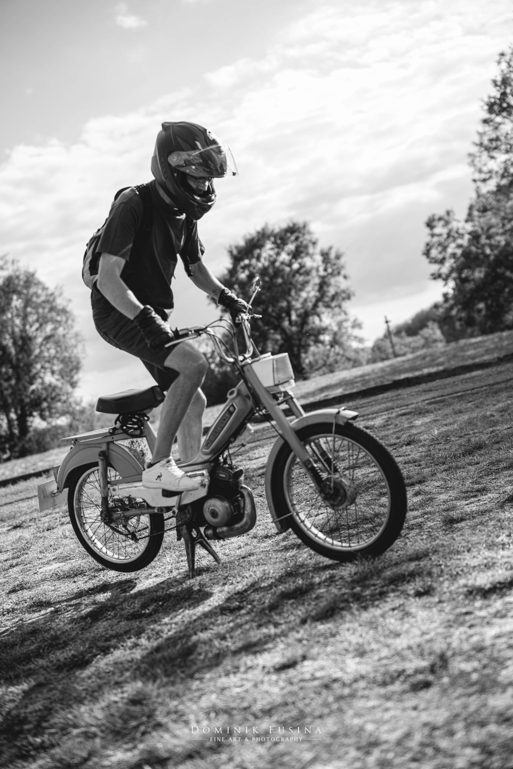 Le temps comme à chaque fois s’écoule vite lorsqu’on échange entre passionnés. Attendu chez lui - et comptant sur le temps nécessaire pour s’en retourner avec cet engin - Eddy se saisit de son gros casque, enfourche le cadre en me lançant « j’espère juste qu’elle va bien vouloir démarrer ». Il est vrai que ce paramètre faisait partie de la normalité avec une mobylette. La mienne savait être capricieuse. Trois tours de pédales suffiront et le doux bruit du petit moteur de 50cm cube se fait entendre. Haaaaaa, souvenirs souvenirs…
