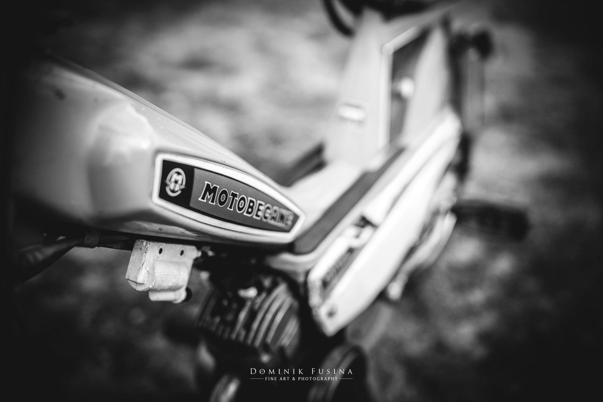 Etonnamment, le motocycliste installe sa mobylette devant la porte de la chapelle et se met à la photographier. Même si la démarche m’amuse et m’intrigue, l’engin lui m’inspire encore plus. Pour tout vous dire, dès mes 14 ans, j’avais hérité de la mobylette Cady (une Motobécane également) de ma mère. Je l’avais entièrement démontée, pièces par pièces (au grand dam de mon père qui s’était dit que je ne pourrai m’en sortir sans son aide… alors que finalement non !), puis retapé en récupérant divers éléments d’une seconde. Pour finir, je l’avais repeinte en bleu nuit au lieu de son rouge initial (je crois que c’est mon oncle, peintre carrossier, qui l’avait fait pour moi). Elle faisait du 35-40km/h à tout casser. Enfin, sur du plat, avec le vent en arrière. Malgré cela, comme pour conjurer le sort de son atroce lenteur face aux « 103 » qui me grattaient odieusement, j’avais peint sur le réservoir un cheval ailé doré (pâle copie de l’emblème du ReaderDigest), et l’avais surnommé « Pégase » ! On se prend à rêver parfois qu’un simple nom de baptême peut influer positivement sur ses médiocres performances… Donc autant vous dire qu’en voyant cette vieille motobécane, de nombreux souvenirs ont refait surface.